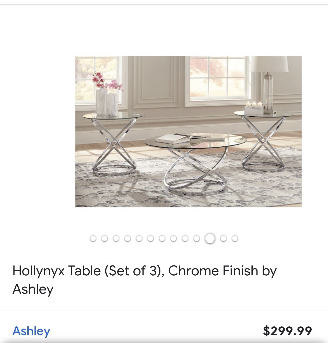 Same as new , set of 3 1 coffee table and 2 end tables Made of chrome-tone metal and clear tempered glass