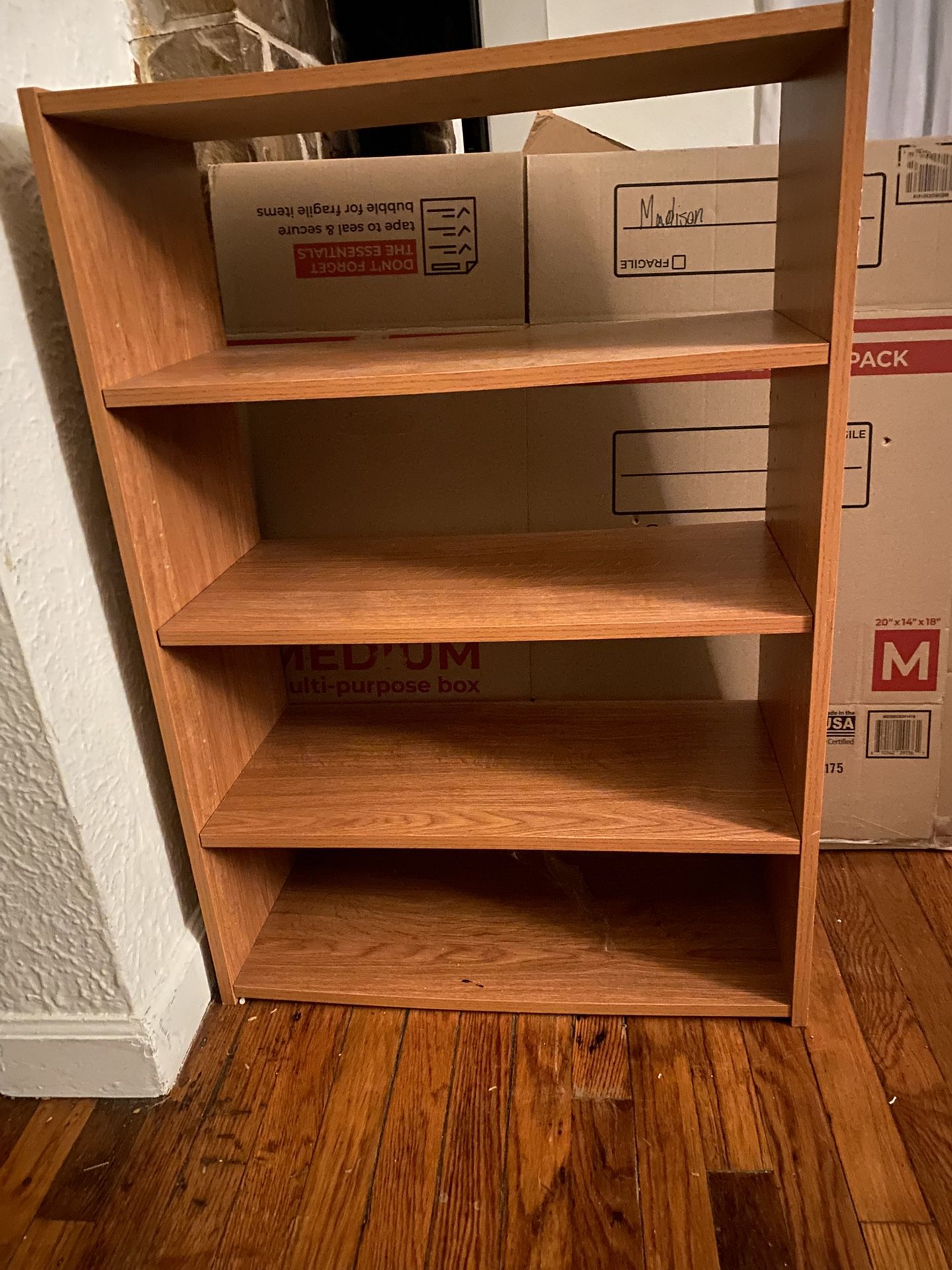 35” H x 24.5” L x 11.5” W Set of 2 Bookcases (exactly the same) A bit wobbly without the backing but in good condition otherwise. Asking $20 for both OBO