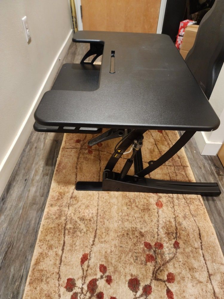 This is an adjustable table-top desktop. Can be used on an existing desk or on a large coffee table. Very practical but I no longer have the space for it.