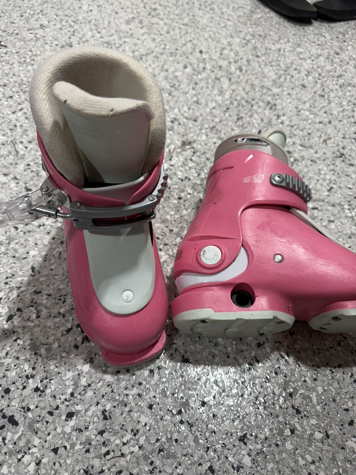 Gently used Roces Idea Up adjustable junior ski boots, perfect for beginner skiers. These boots are size-adjustable, so they grow with your child and last multiple seasons. Details: • Brand: Roces • Model: Idea Up • Youth / kids ski boots • Adjustable sizing (16.0 to 18.5) • Soft flex – great for learning • Easy on/off design • All buckles work properly • Normal cosmetic scuffs from use