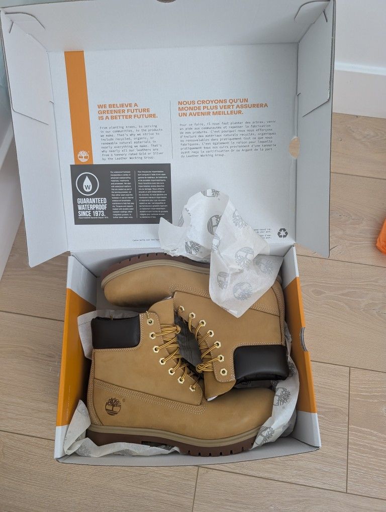 Brand new, never worn Men's Timberland 25 6-Inch Waterproof Boots in Wheat Nubuck. Size 10, Medium width. Still in original box with all packaging. Retail Price: $220 Asking: $160 firm These are the classic Timberland look with modern comfort technology. Perfect condition - just looking to recoup some of the cost.