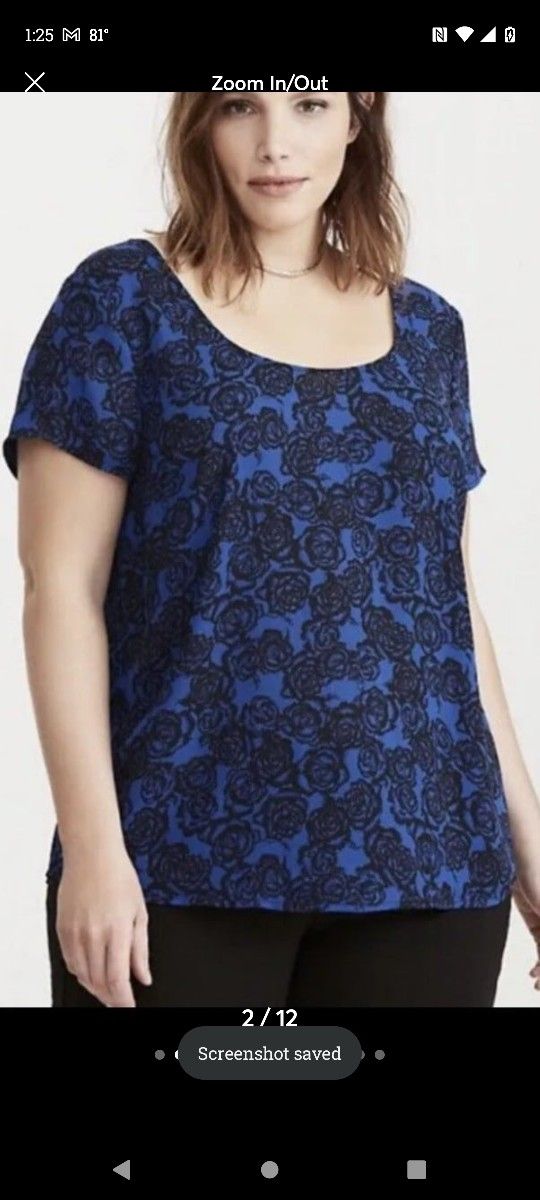 New Torrid Women's Plus Size High Low Blue Black Floral Top Size 3 3x see pics for measurements and details
