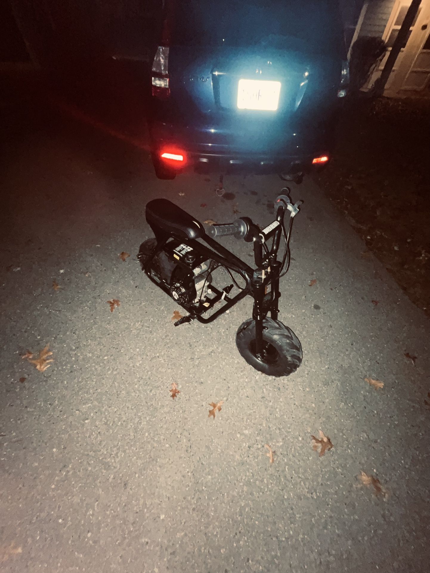 Gas mini bike max speed is 35 or more depending on rider. I would trade for ebike, wheelie bike, or anything your want to trade. Hit me up with offers. New light and tail light. Put on new throttle. Small rip in seat that I will probably get fixed very soon. (will reply to everyone)
