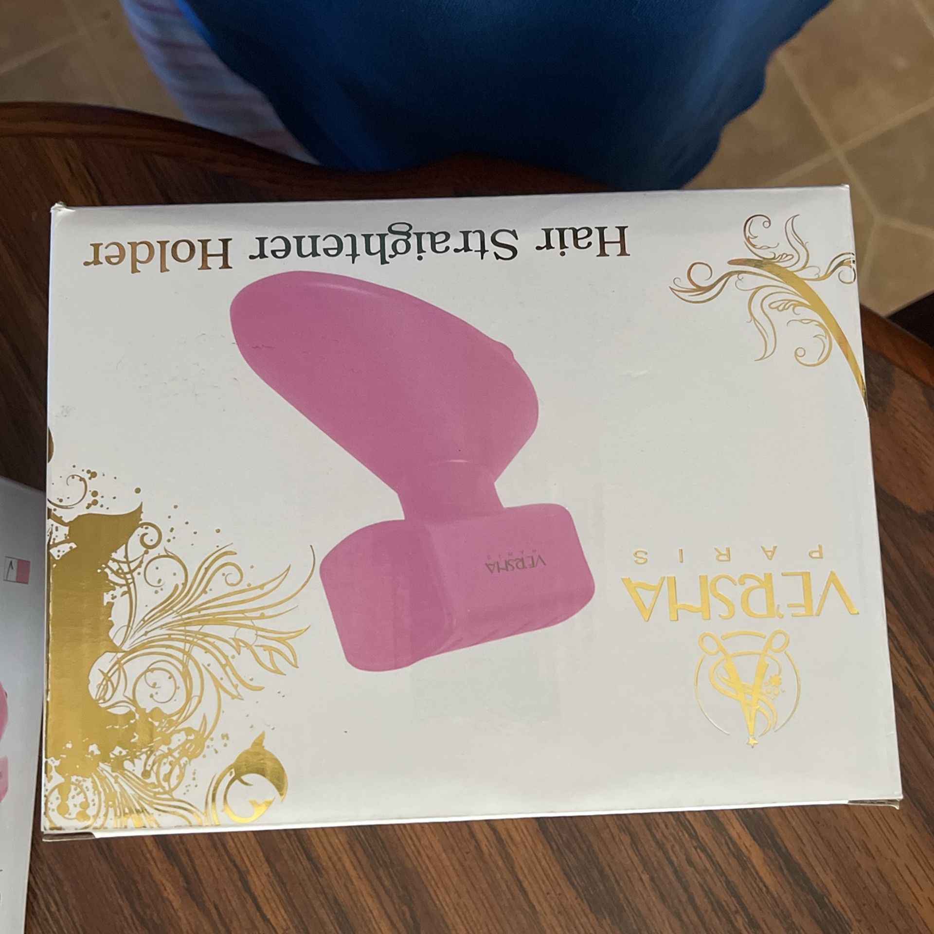 Brand new hair straightener holder. It has 4 suction cups to attack to the counter or makeup table etc.