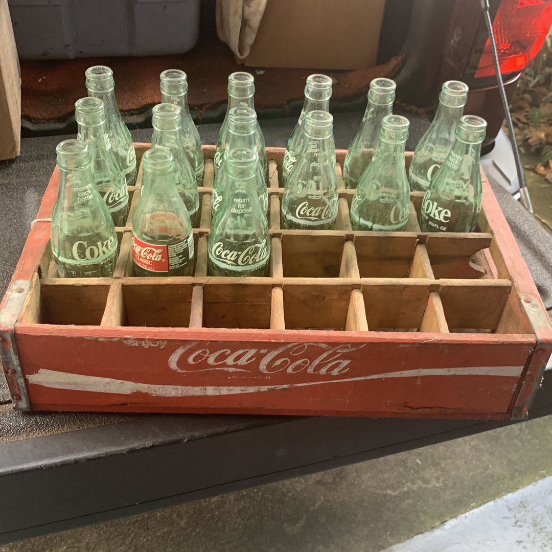 Red Coca Cola crate is in excellent condition. The bottles also are in good condition.