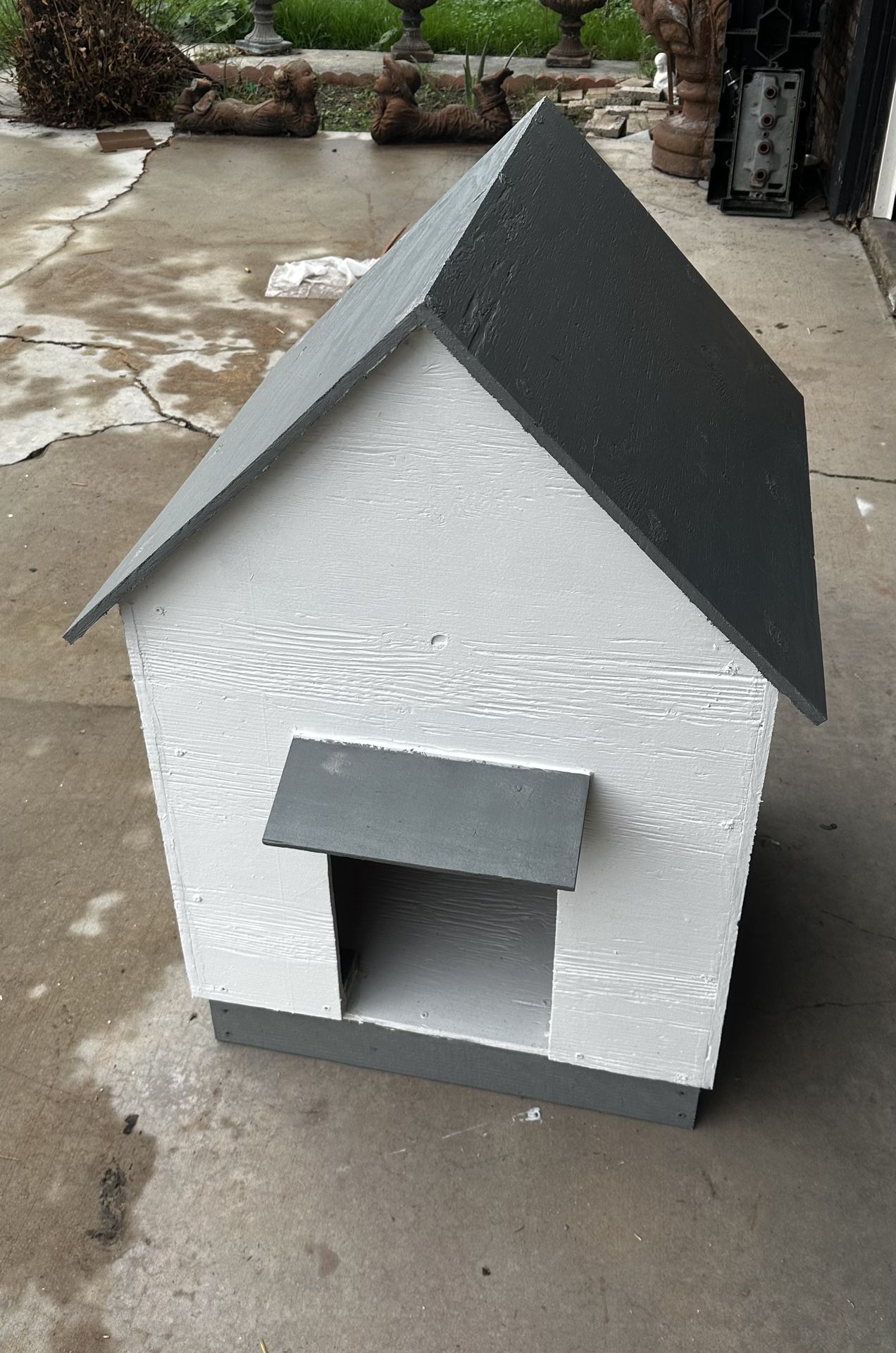 New all wood Water proof Inside sealed too Medium size dog house 2 feet x 2 feet base 3 feet tall Small to medium size dogs For up to 16 inch tall dogs Like French bulldogs $80 I can make any size let me know