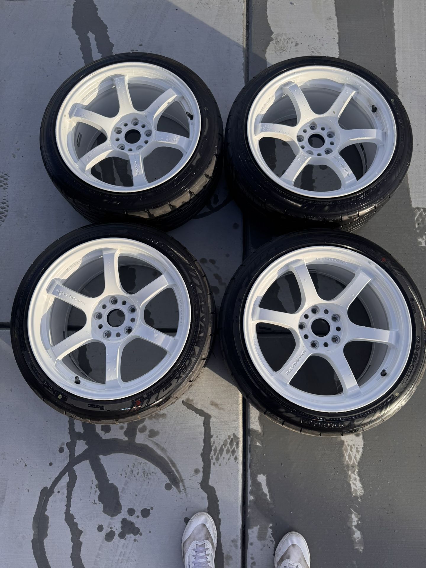 5x4.5 bolt pattern Yokohama Advan Apex Tires. 245/40/18 Good tire tread left. About 10k miles on the tires.