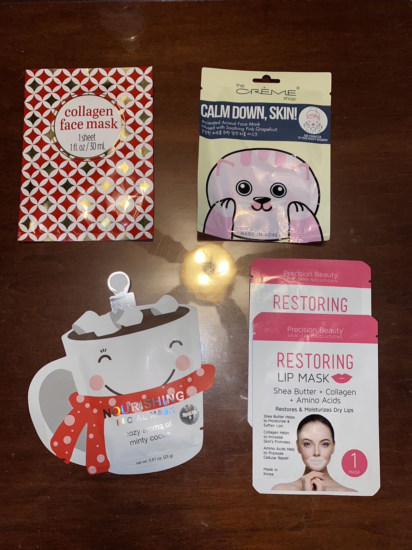 3 different face masks and 2 lip masks.