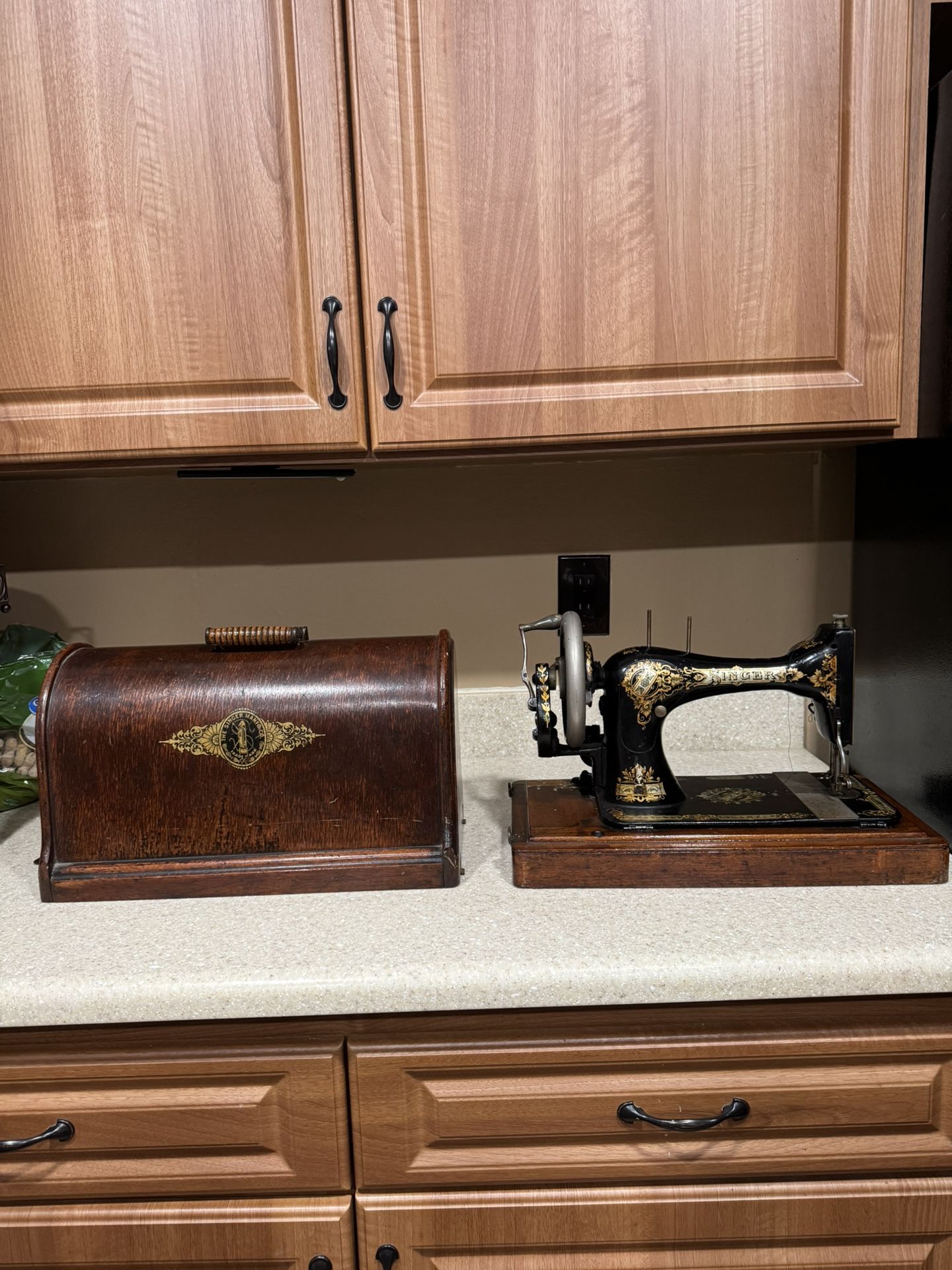 Antique Hand Crank Singer Sewing Machine With Wood Carrying Case