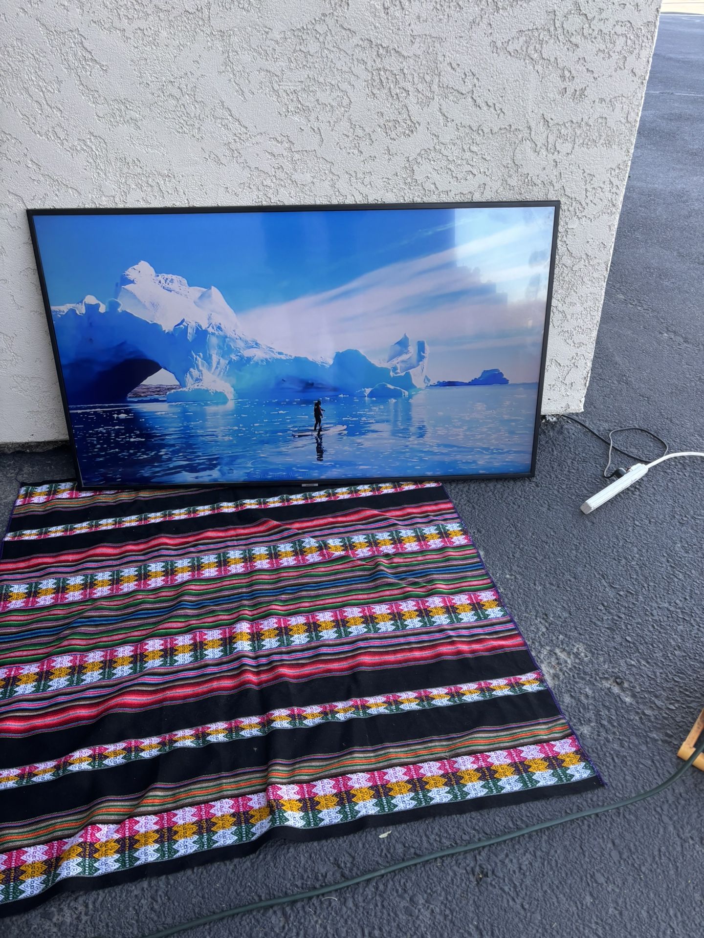 Clear picture with this Samsung 50” smart 4k tv. Works great. Has remote and mounting bracket. No legs included.