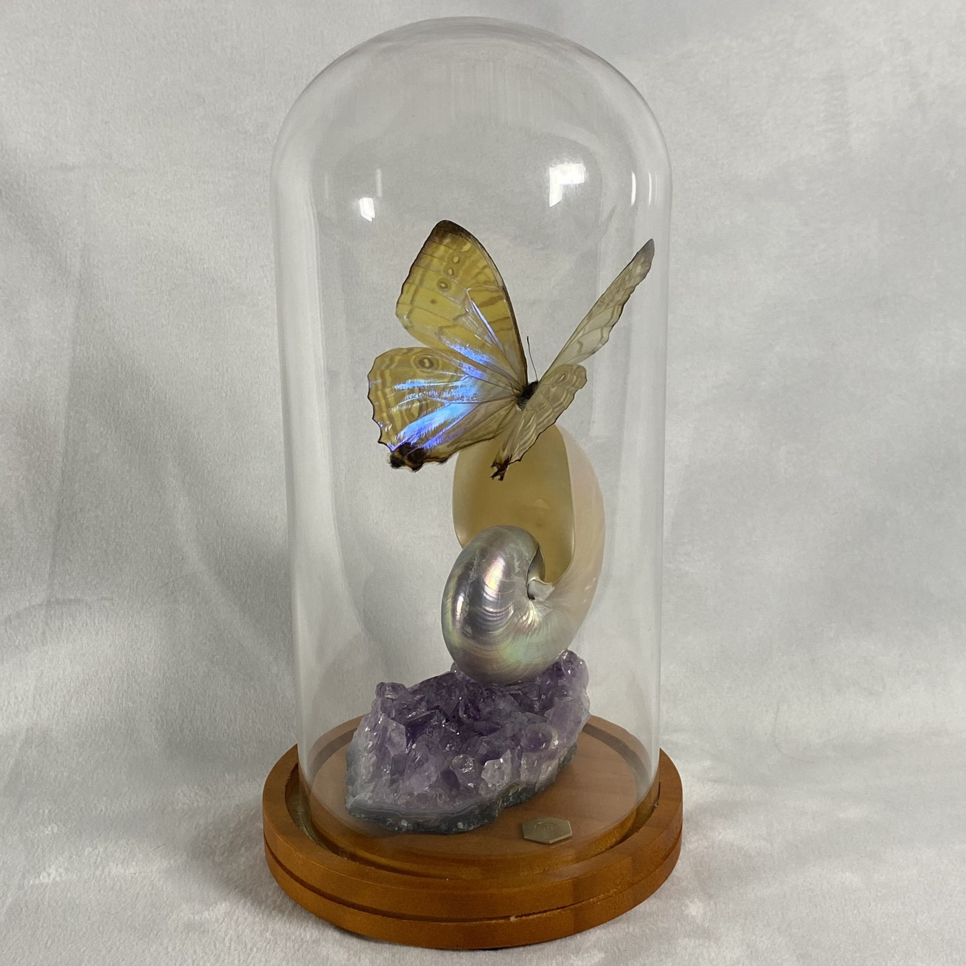 Pearl Morpho Butterfly Display Nautilus Sea Shell Amethyst Taxidermy Oddity
