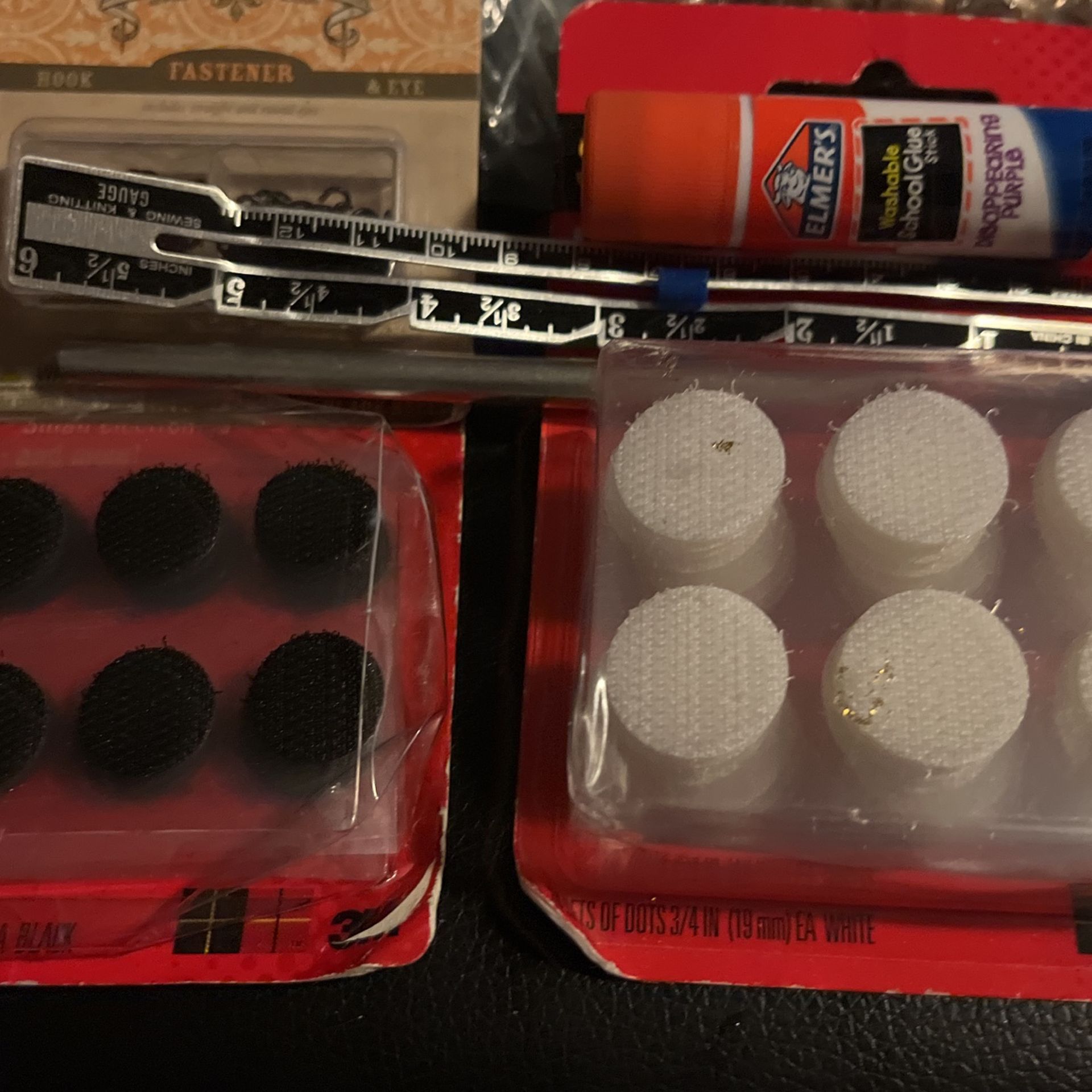 Meg tape paint brush s ith fasten indoors scotch fasteners jjingle bells a bag.Of needle all for 5.00