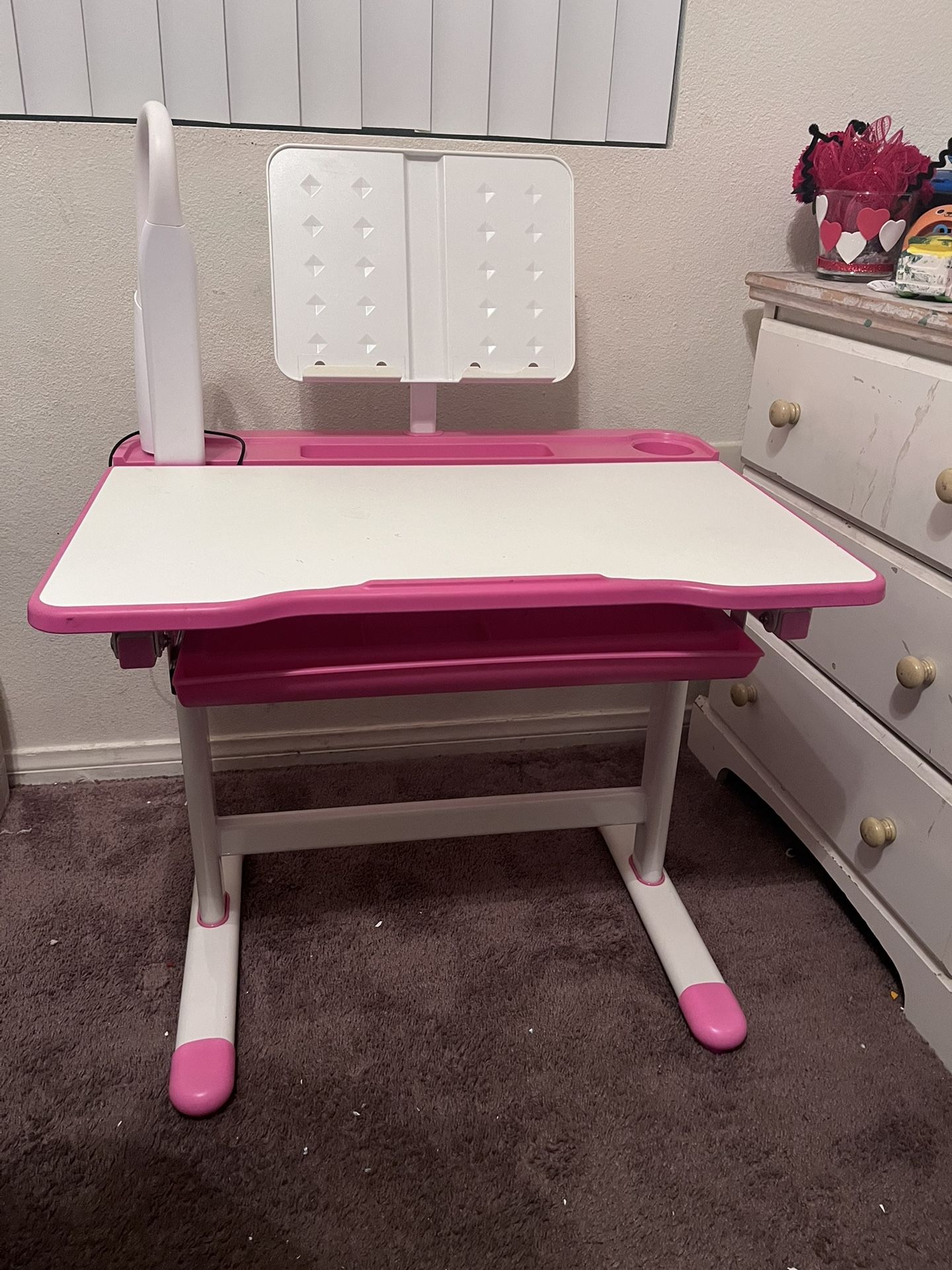 This pink height-adjustable desk is the Vivo V201G model, designed ergonomically for children Used in good condition no chair just desk