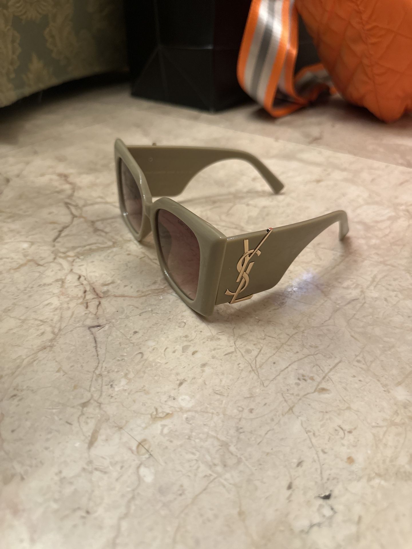 YSL Style Oversized Sunglasses Beige/Neutral Frame