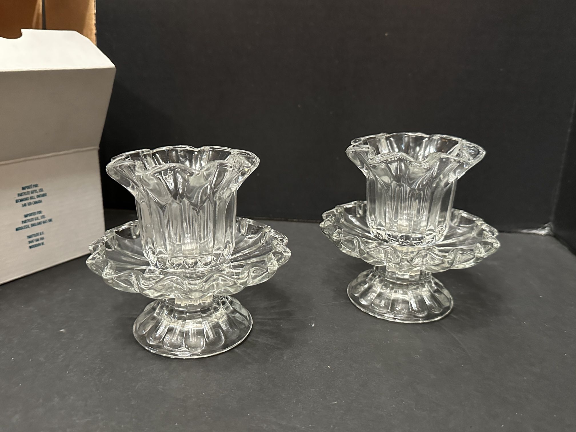 PartyLite Chantilly pair of candle holders. Versatile pair that can be used for tapers, votives, tea lights or pillars. New in box.