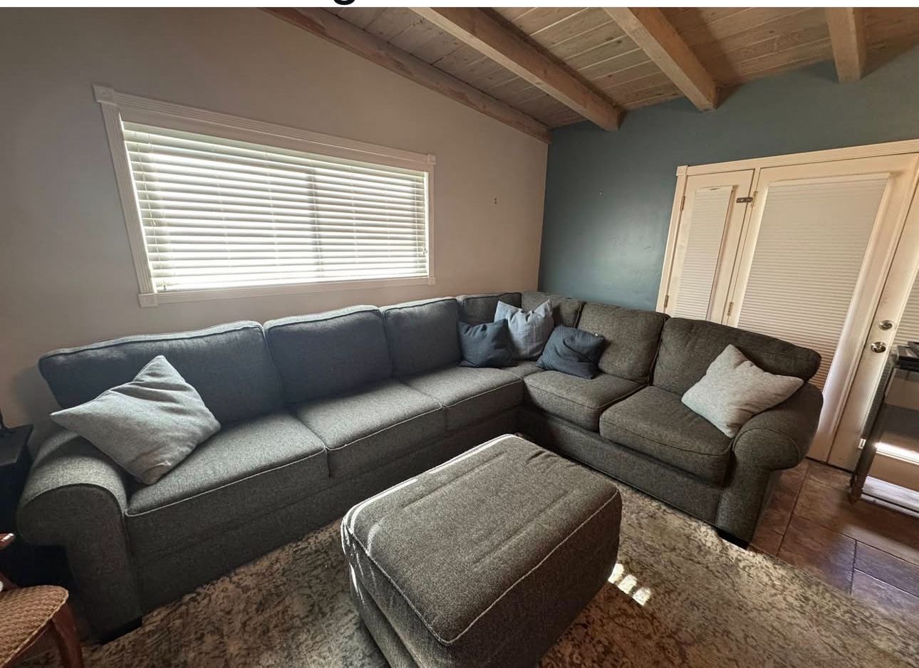 Sofa sectional 7 1/2 by 6 1/2. Excellent shape, only a few months old. no smoking, no pets home. The best quality foam and high end quality fabric. Antique bedroom set; Queen size bed kept in excellent shape, no scratches or stains, Beautiful Armoire and two night stands with real marble top. Mom is transitioning to an assisted living facility and we need smaller furniture that fits her new room.