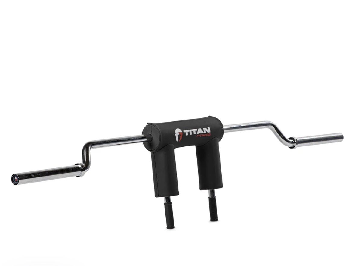 Squat like a pro with this safety squat bar. With 50" of rackable length, this bar easily fits a large variety of power racks. Weighing in at 58 LB, this beast has a 1,500 LB capacity for heavy lifting and is crafted from tough chrome for added wear-resistance - perfect for traditional squats, front squats, lunges and more. Got hip, knee, back, or shoulder issues? This cambered bar is your new best friend. The 5" drop stabilizes your center of gravity and forces proper form to minimize pain. And the built-in high-density HeftyGrip padding reduces the risk of wrist, elbow, shoulder, and neck injuries. Equipped with anti-scratch chrome sleeves and designed for Olympic weight plates, this specialty bar has 14.75" of loadable length on each side. Plus, the 35mm anti-slip rubber hand grips provide control and comfort while you lift and ensure that a poor grip never gets in the way of your next PR.