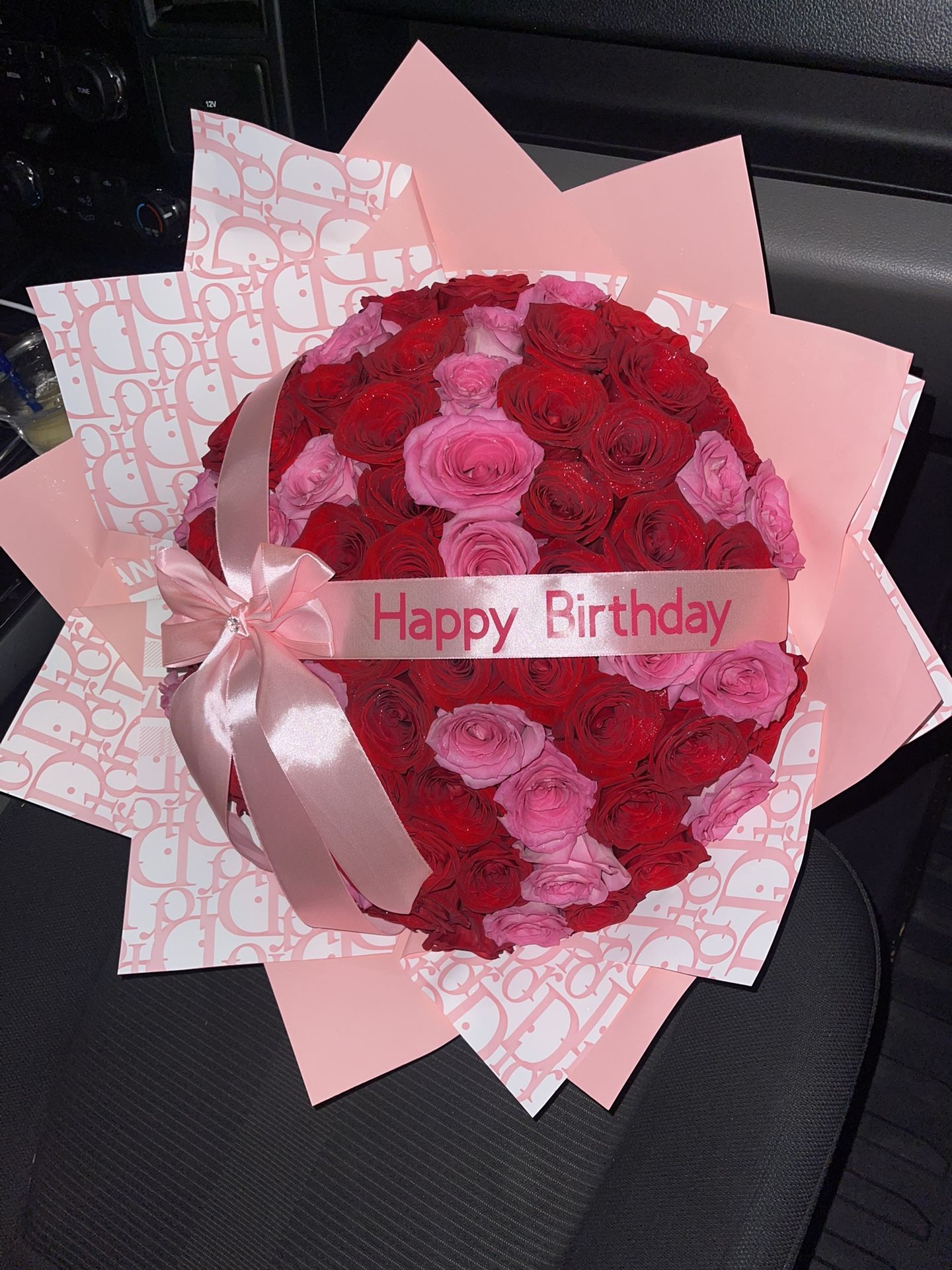 Hi ! This bouquet includes 75 roses and a banner and bow combination 💗 ¡Hola! Este ramo incluye 75 rosas, así como una combinación de pancarta y lazo 💗 Other styles and combinations available please message me for more information 🌹 Otros estilos y combinaciones disponibles, por favor envíeme un mensaje para obtener más información 🌹