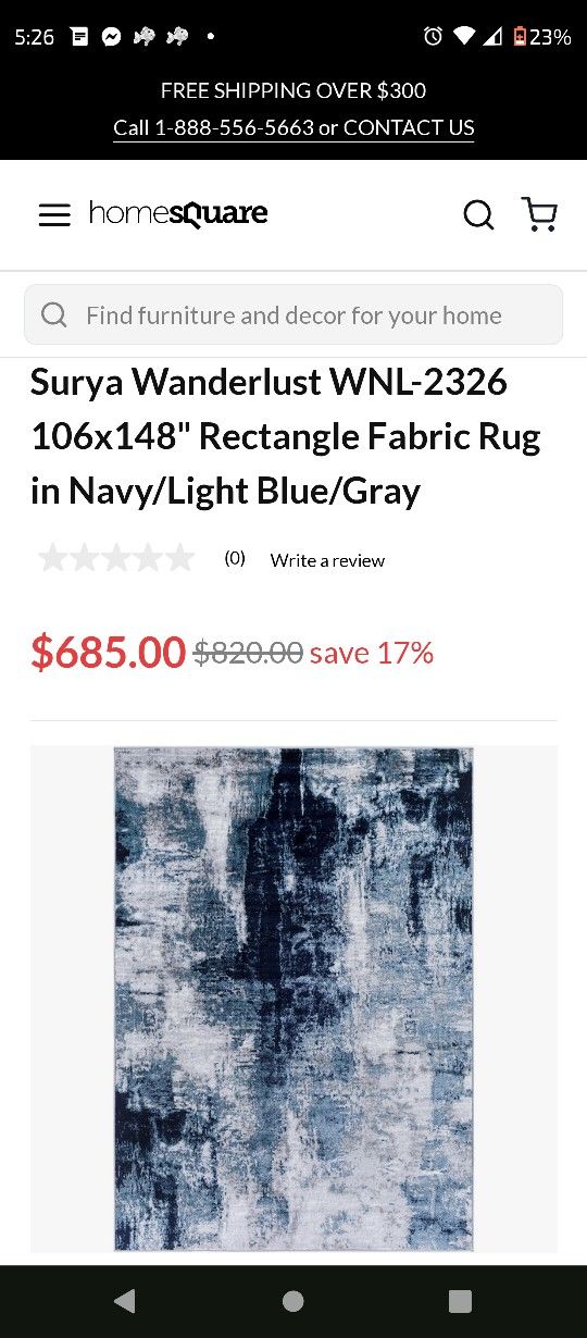 Practically new. Never even seen furniture or ANY foot"traffic" on it. It does have (2) small blemishes (see pics) that I'll probably have washed out before you pick up. So ignore last statement. Lol. Jus' sayin'.!
