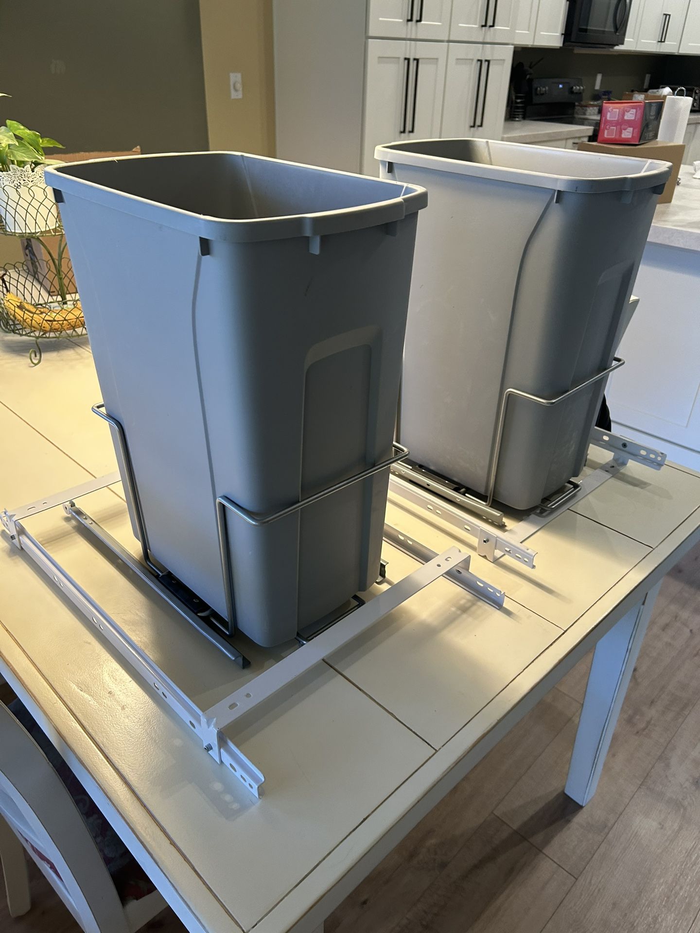 Almost new. 2 under mount kitchen trash cans and accompanying slides.