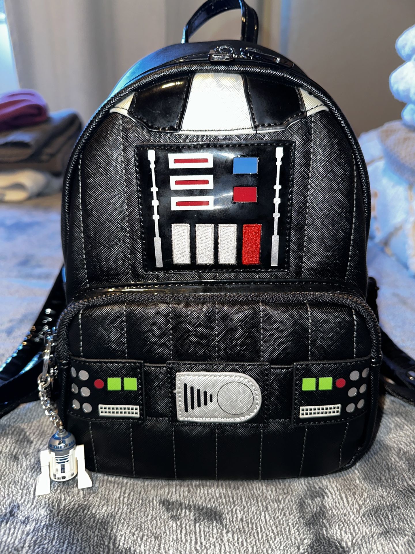 Used only a couple of times, in really good condition. The backpack still lights up, but could use new batteries since it is not as bright anymore. Comes with a LEGO R2D2 keychain.