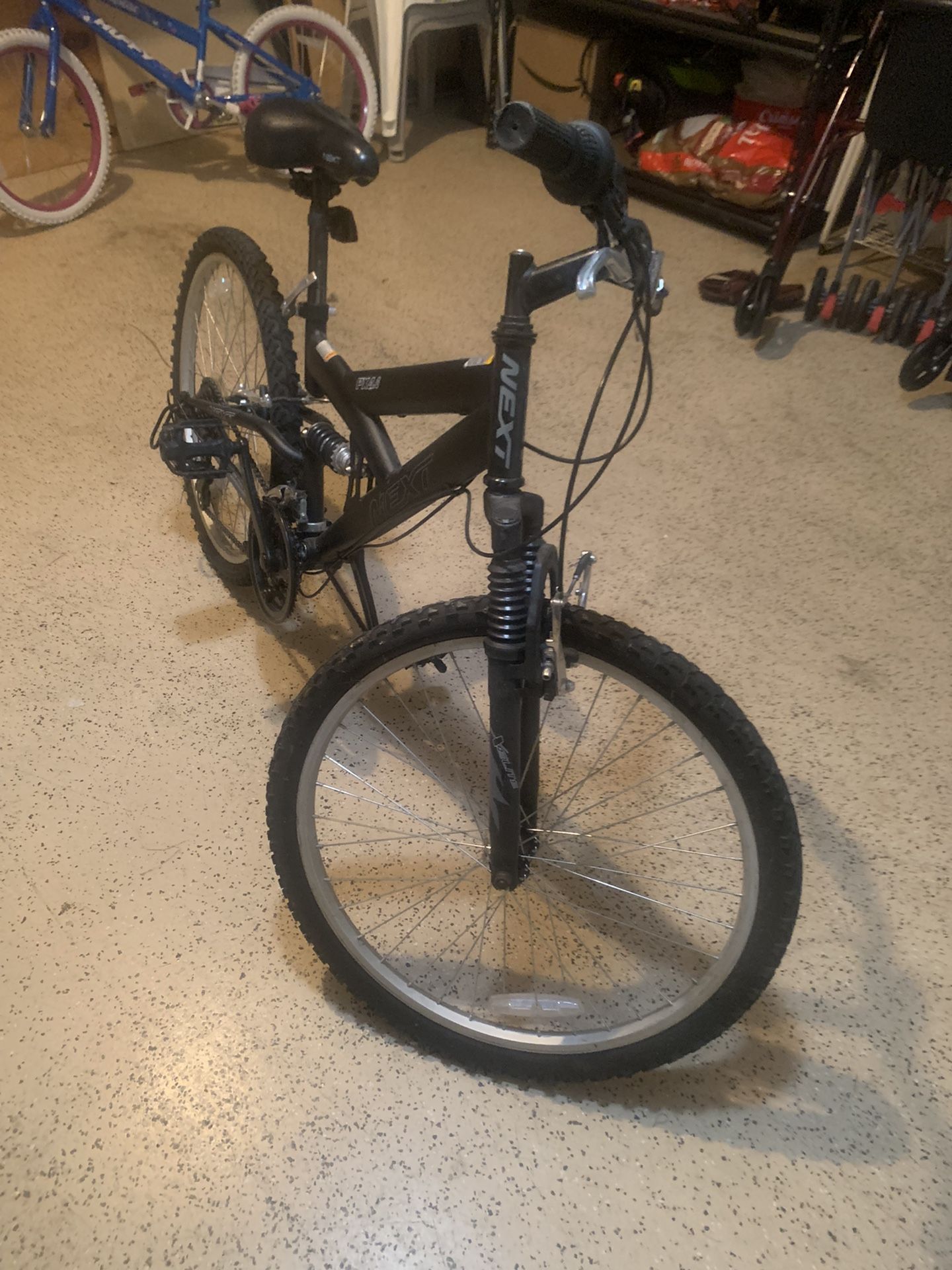 24” wheel black Mountain Bike Has gear shift and friction control Used condition There is wear and tear on the bike but it runs perfectly fine 100 obo