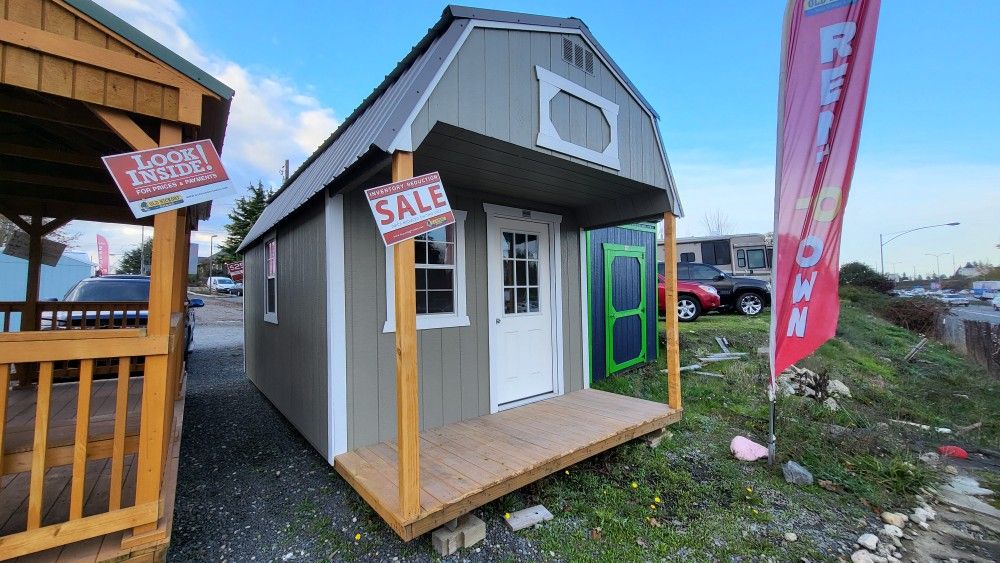 10x20 Lofted utility Shed Playhouse Package $7,892 + Tax Rent To Own Price $292+ Tax 60 Month Rent to own No credit check! Instantly approved! Do not need to worry about getting approved with financing because there is no financing! No inquiries on your credit! Ask about our 90-day same as cash deal Free delivery up to 30 miles