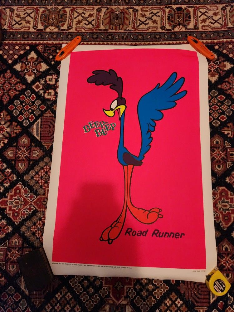 1968 Road Runner Artko Studios Litho Blacklight WARNER BROS 23x35" Rare!