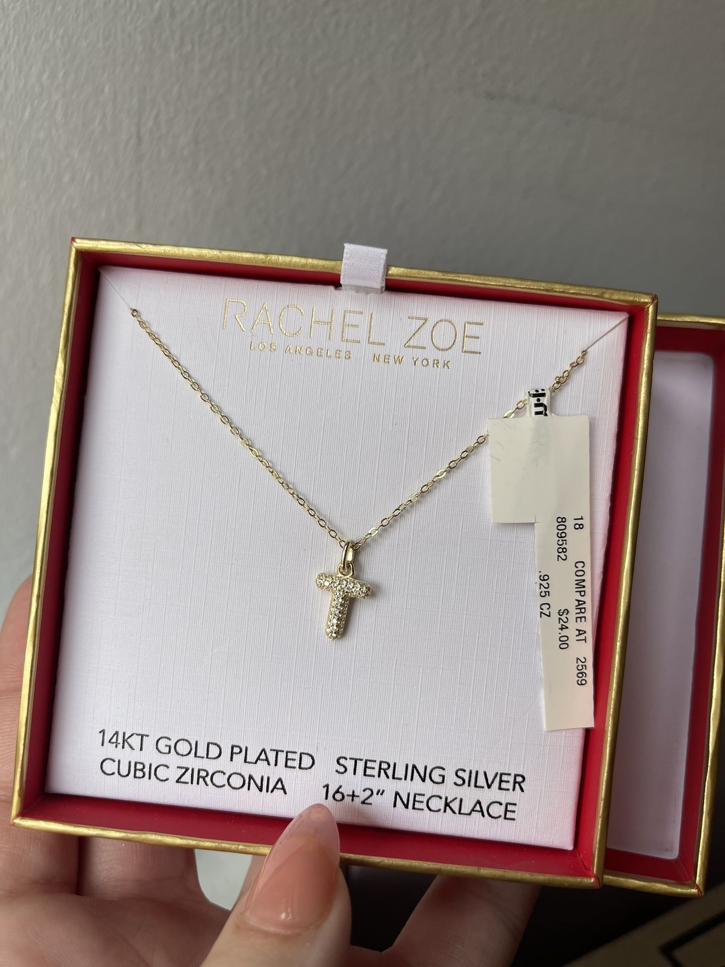 Brand new with tags and original box. Brand: Rachel Zoe Cubic Zirconia stones with the letter T. Pickup in Hialeah.