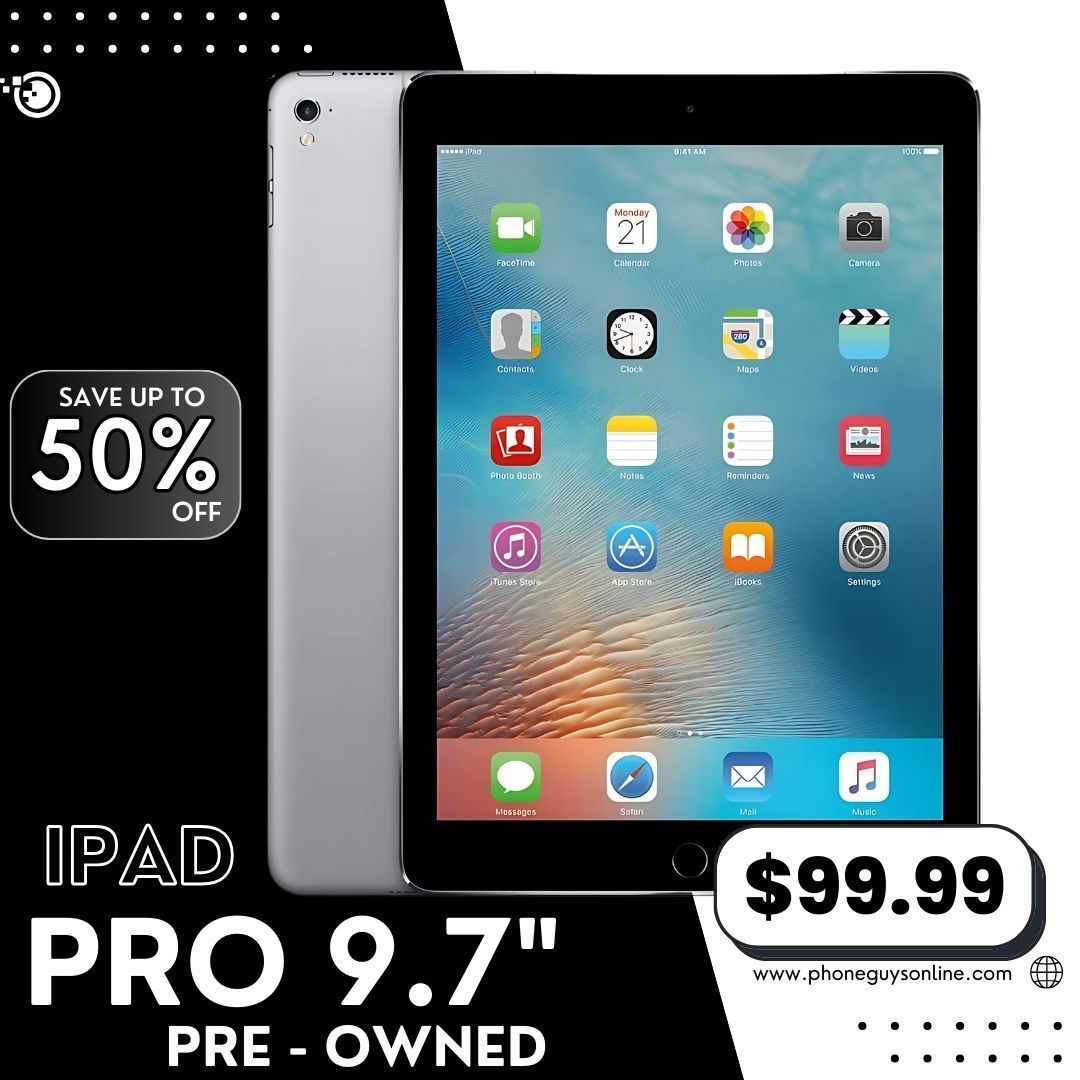 Affordable, powerful, and perfect for everyday use β the Apple iPad Pro 9.7" (Pre-Owned) is available now starting at just $99, with Wi-Fi and Cellular models to choose from! πΈ Starting at just $99 π§Ό Pre-Owned β fully tested and cleaned π‘οΈ Includes up to 6-month warranty π Great for school, reading, streaming, or gifting π¦ Limited stock available β¨ Key Features: β’ 9.7β Retina Display β’ A9X Chip | iPadOS Ready β’ Supports Apple Pencil (1st Gen) β’ Thin, lightweight, and long battery life β’ Stereo Speakers | Touch ID π Pricing Options: Wi-Fi Only: $99 Cellular + Wi-Fi: $119 π² Message The Phone Guys now π Shop online: www.phoneguysonline.com