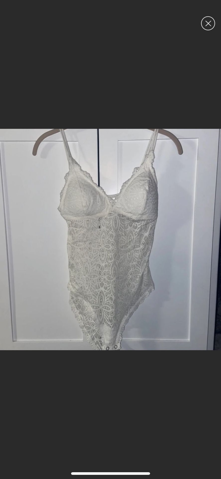 Very popular lacey crochet strappy bodysuit in white size small & sold out at hollister! This is their Gilly hicks intimates brand. Adjustable straps with a V cut in the front and a sexy low back along with a cheeky bottom :-) original price $35 plus tax $37 and brand new!