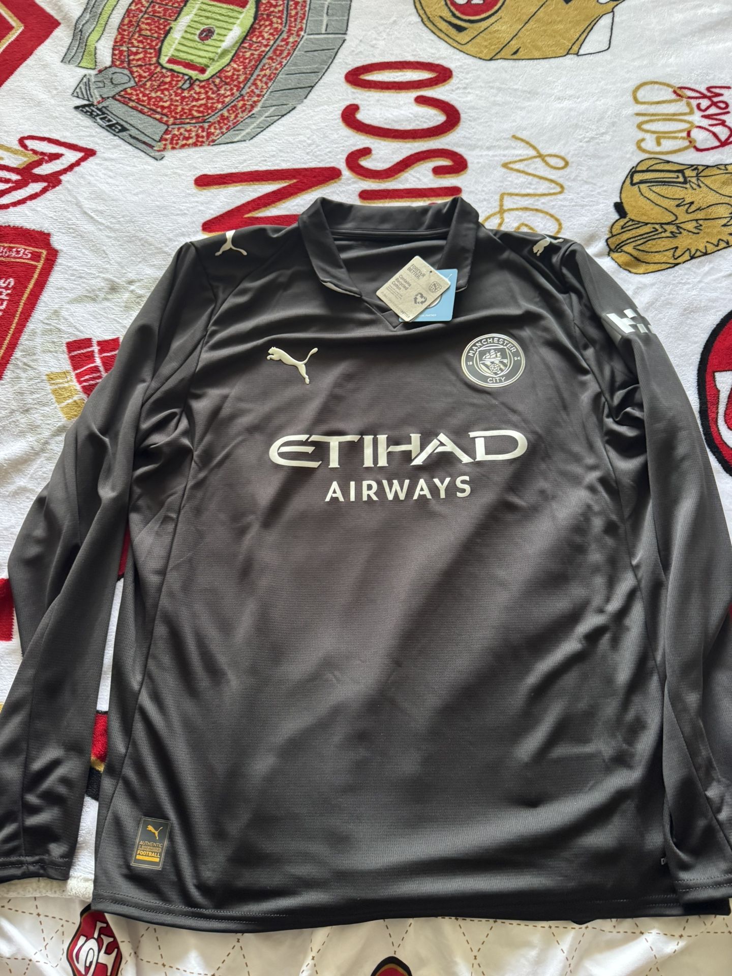 I Have this season Manchester City Away jersey Black long sleeve Puma Size XL from Puma online Very nice jersey Long sleeve