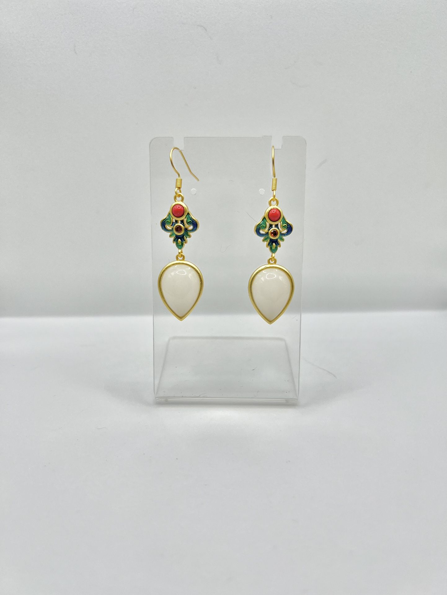 18 mm white jade 3 mm red turquoise bead 2 mm red cz 2 inches long Dangle style Stamp 925 Ship out next day with tracking number