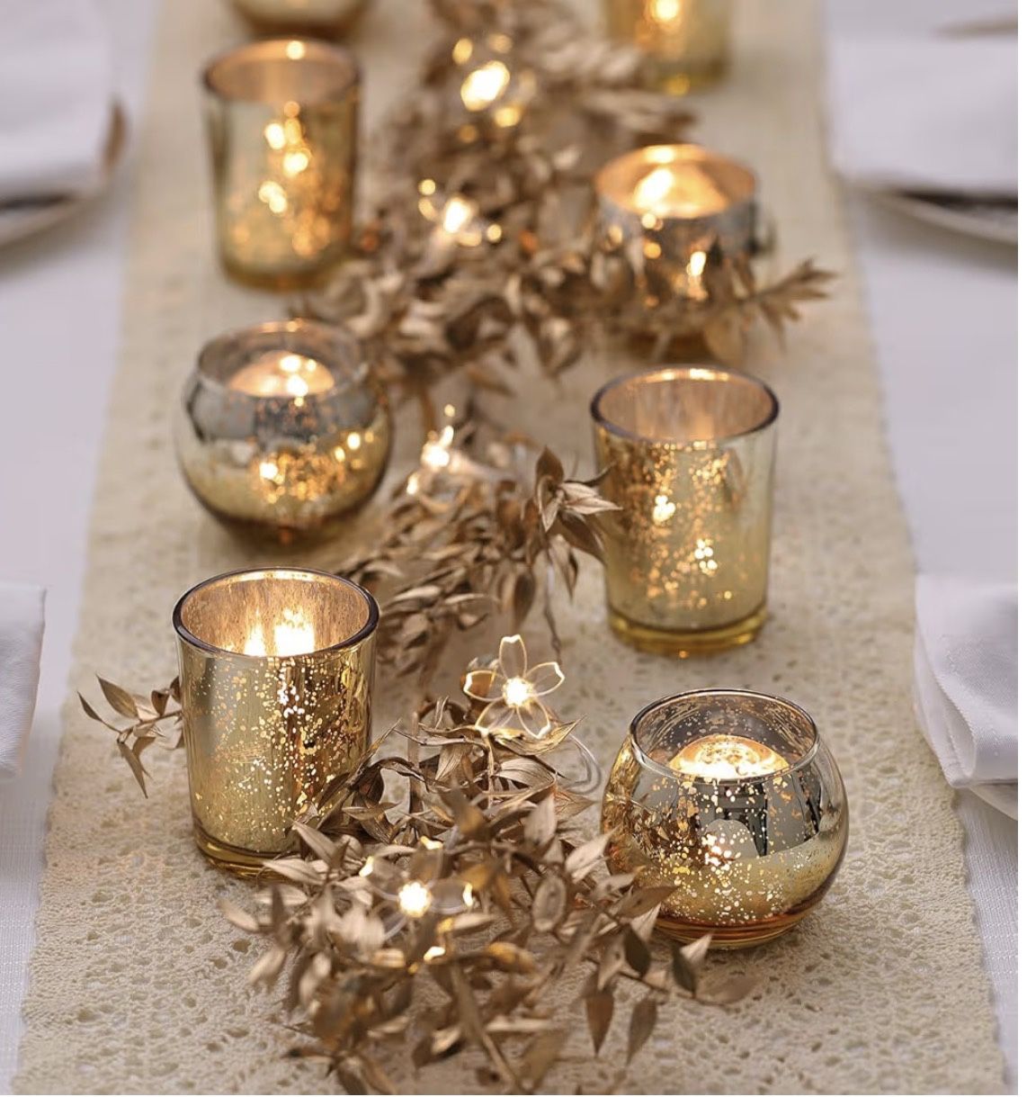 $10-LETINE Gold Votive Candle Holders Set of 36 - Speckled Mercury Gold Glass Candle Holder Bulk - Ideal Fall...
