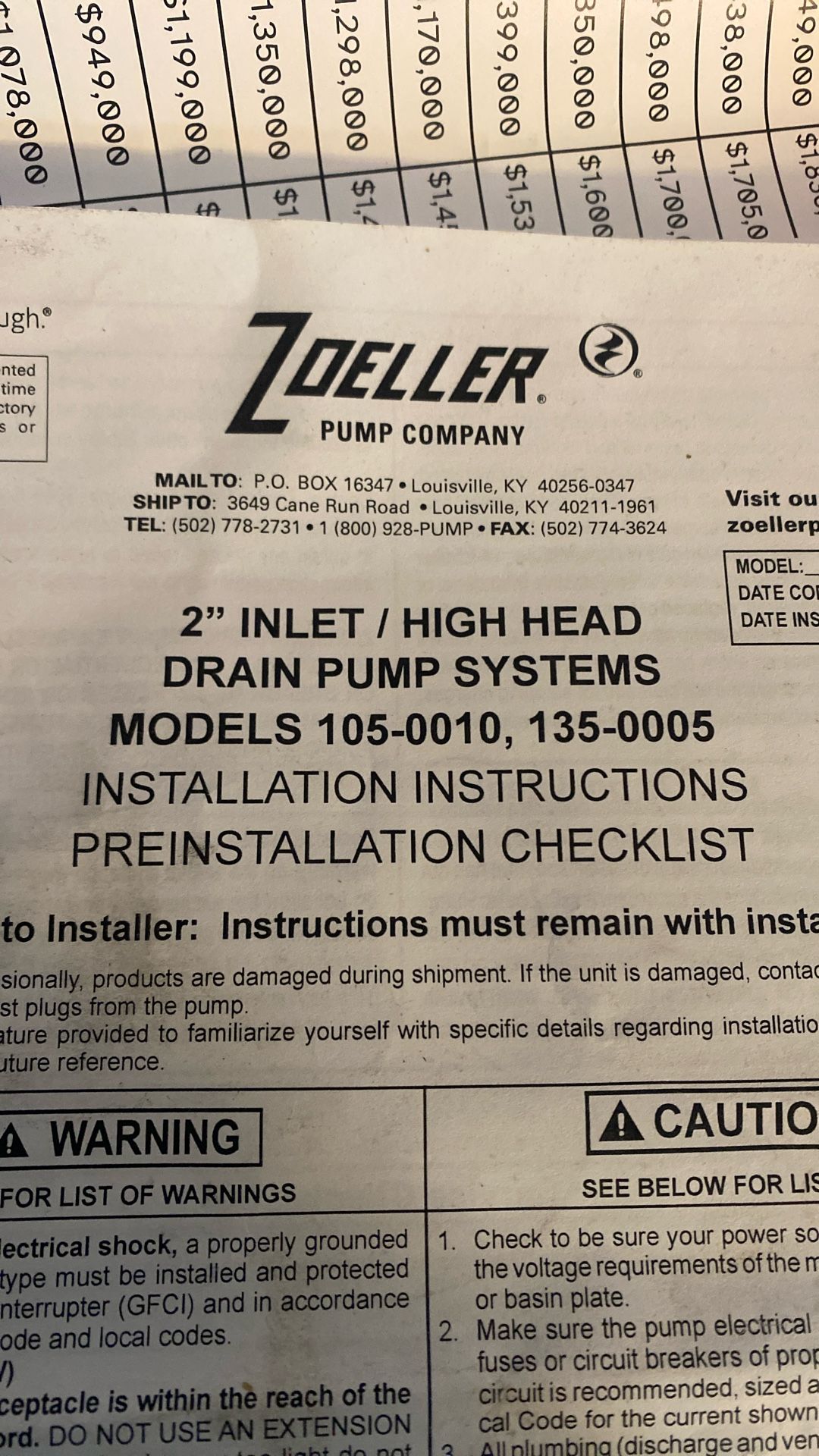 New In the box Zoeller pump Models 105-0010, 135-0005