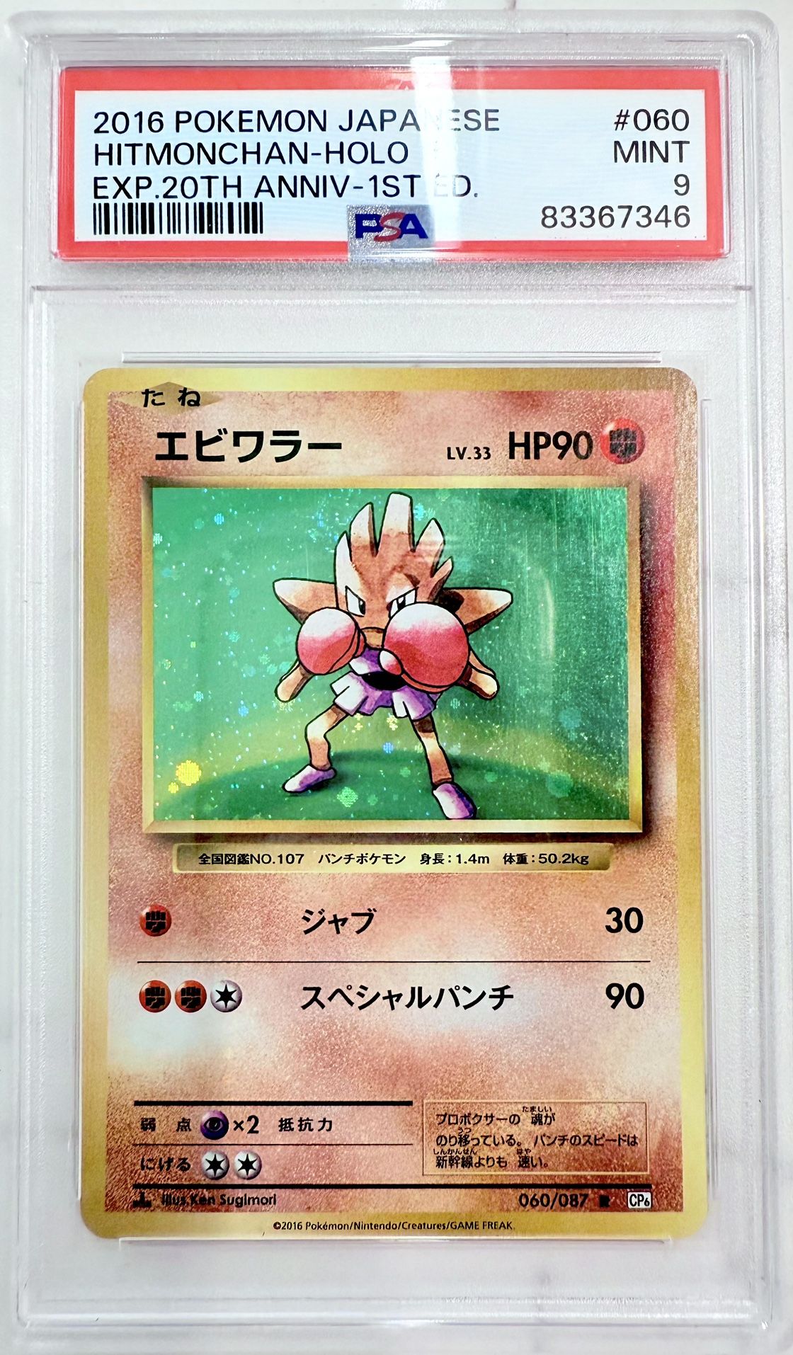 ๐SWIRL๐ 2016 Pokemon Japanese 20th Anniversary PSA 9 Hitmonchan Holo 1st Edition With Swirl Next to Head Graded PSA 9