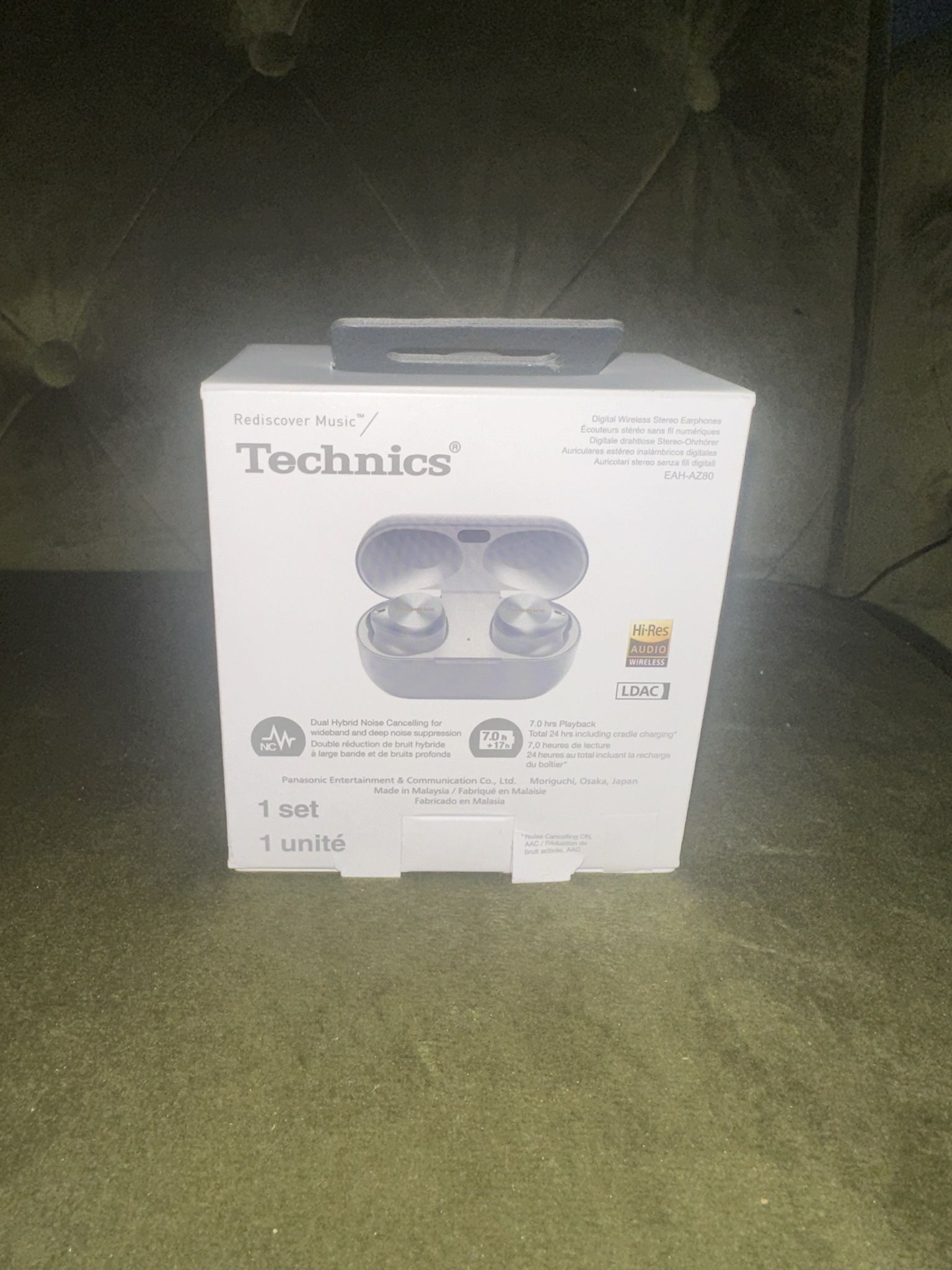 Brand new open box Technics Premium Hi-Fi True Wireless Bluetooth Earbuds with Advanced Noise Cancelling, 3 Device Multipoint Connectivity, Wireless Charging, Hi-Res Audio + Enhanced Calling - EAH-AZ80-S (Silver)