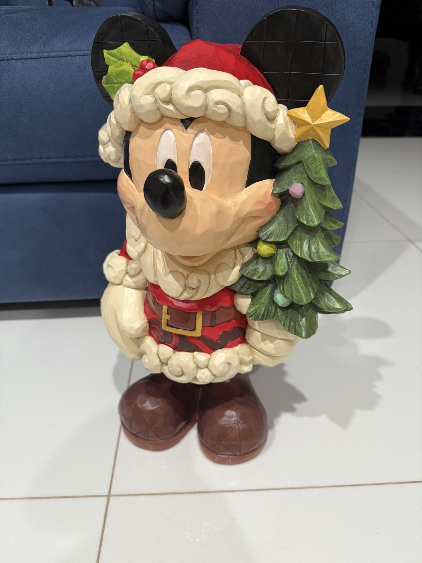Adorable Mickey Mouse Santa statue holding a Christmas tree — perfect for holiday decorating! Beautifully detailed, looks like hand-carved wood style, and adds the cutest Disney magic to your Christmas setup or a great piece to your collection.