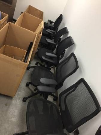 Like new high-end office chairs in all black hundred percent fully functioning commercial grade perfect for all Day seating with Lombard 2-Allseating 100% mesh chairs in all black $100 each 2- Hayworth improv with Lombard and cable adjustments $180 each 2 Hayworth Zody Flagship chair all black mesh back Lombard Cabal controlled selling $180 each All like new Lightly used