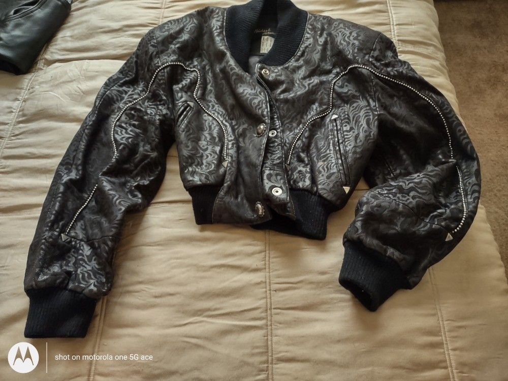 Flashy and in very good condition, leather women's riding jacket, could be motorcycle or caballero!