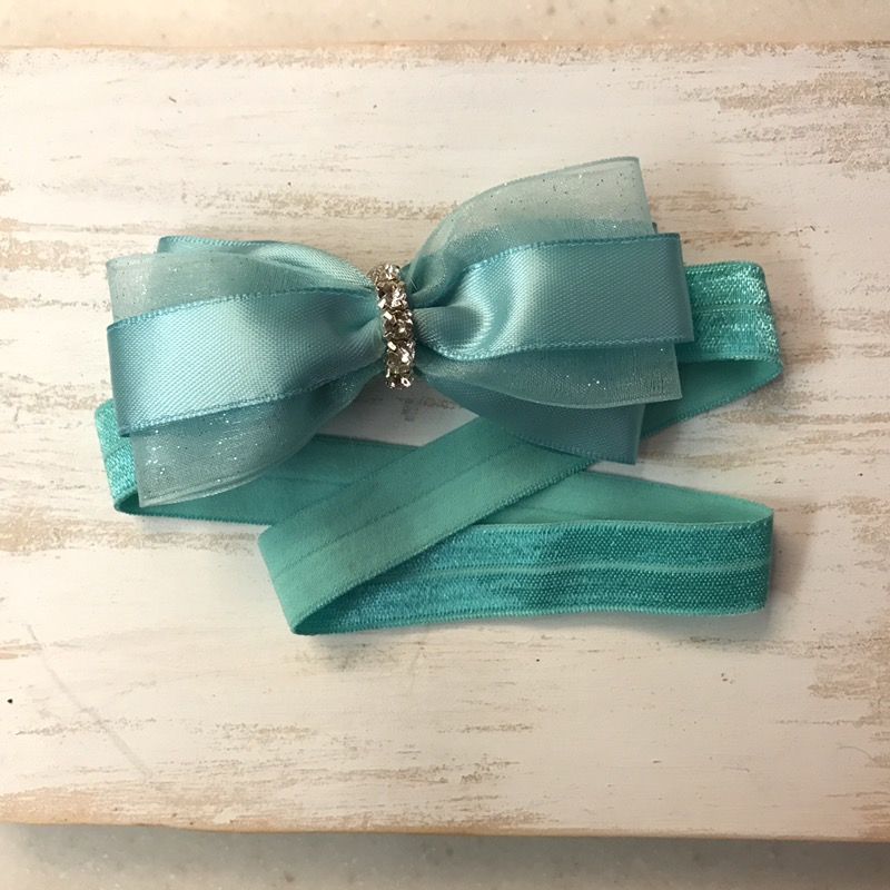 Handmade bow with headband attached. Perfect Tiffany blue color for this Easter.
