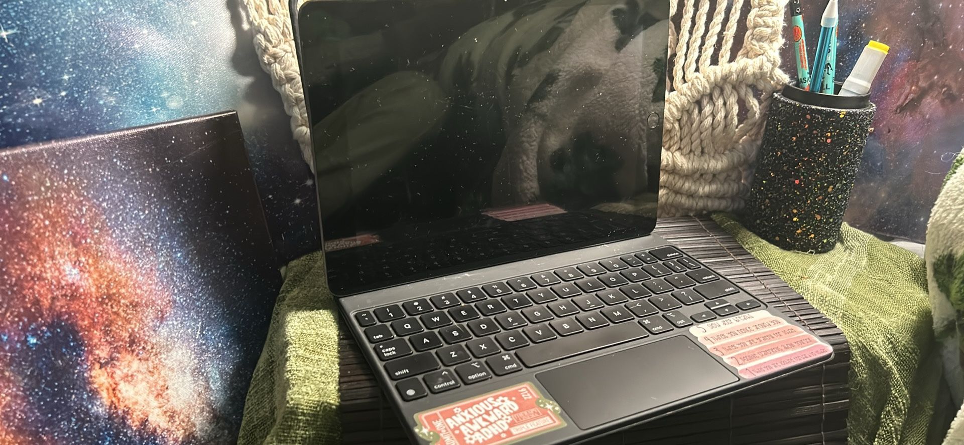 Apple mini magic keyboard It’s 10 to 12.9 inch iPad In great condition and stickers are as well you can remove them if there is necessary or I can