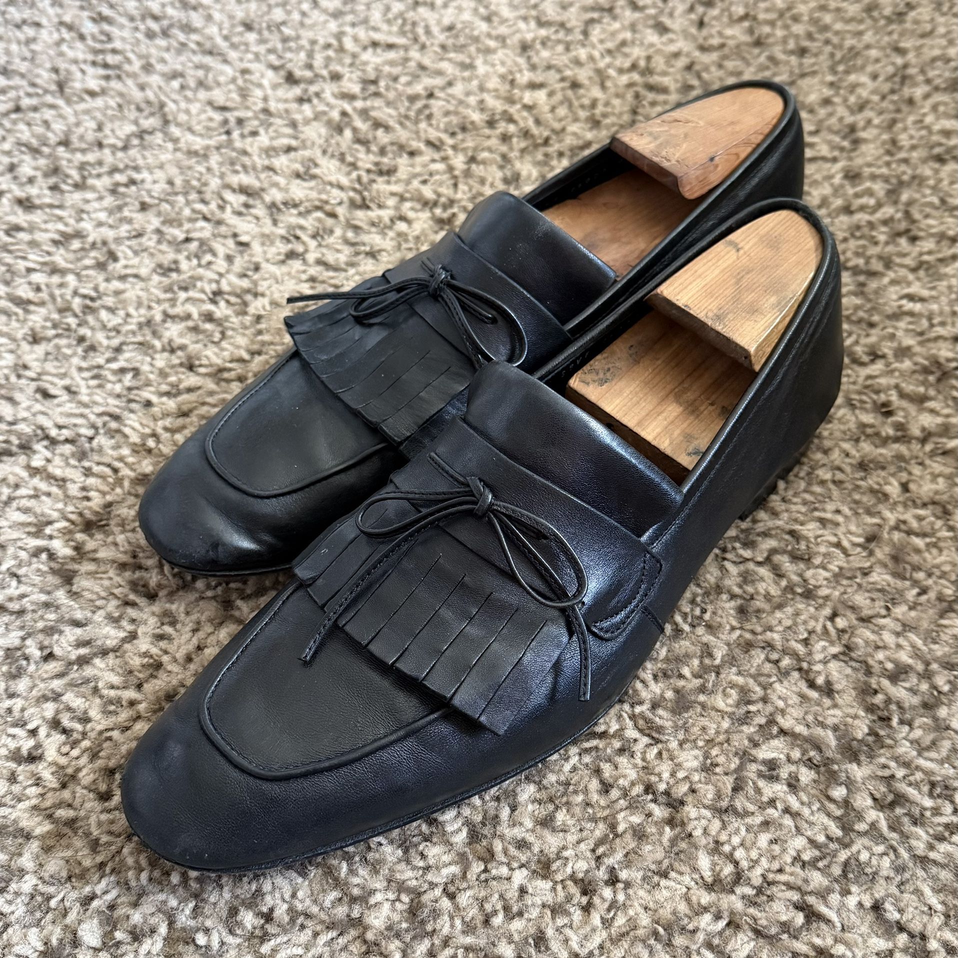 Salvatore Ferragamo Black Leather Bow Tassel Dress Loafers Men’s Size 11.5D