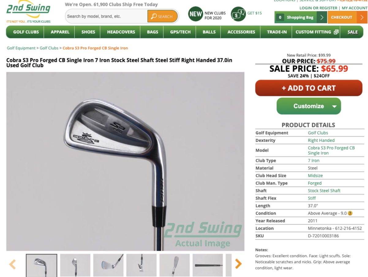 Cobra S3 Pro Forged CB Single Iron 7 Iron Stock Steel Shaft Steel Stif