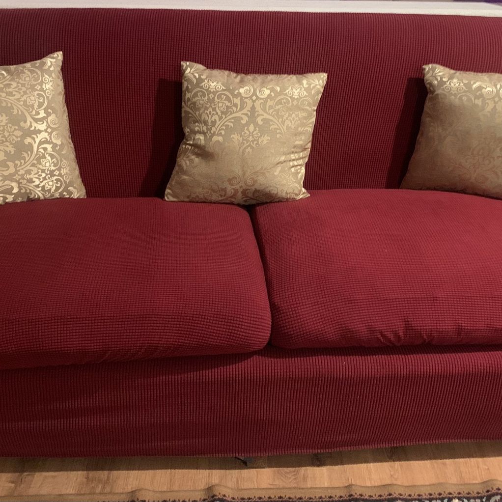 Very comfy 3-seater couch, 2 large base cushions. New couch protector placed. Cushions and cushion covers included. Cash/Venmo, pick-up only.