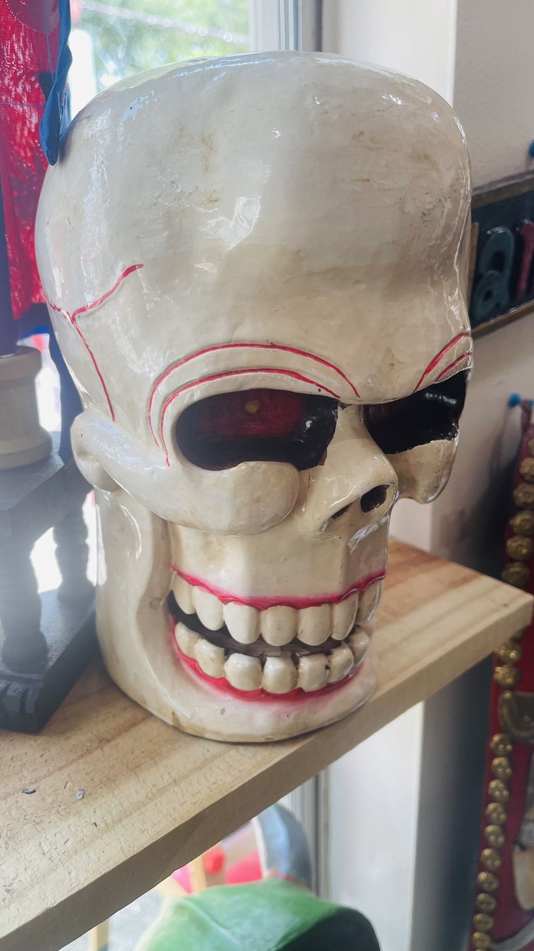 Made from carved wood and hand-painted, this unique piece adds a fierce and vibrant touch to any space. Ideal for bohemian, spiritual, or eclectic home décor themes.