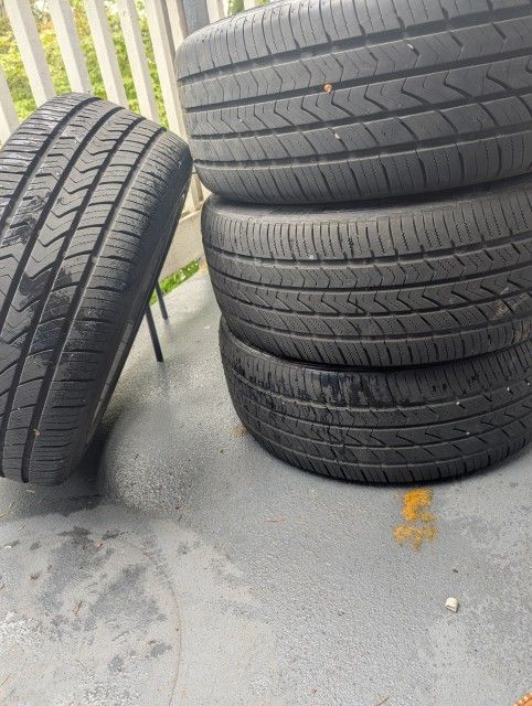 The rims are Raceline The tires are Toyo Premium Touring Ultra 900 These came off a used car that I purchased. They are not my style so I found the original tires and replaced these. Rims and tires are sold as a set of "4". I refuse to sell them any other way. They have really good tread left on them and they have minimal curb rash. Rims size TD 304B-17x7.5 DOT-T SAE J2530 Tire size 225/45 R17 PRICE $475