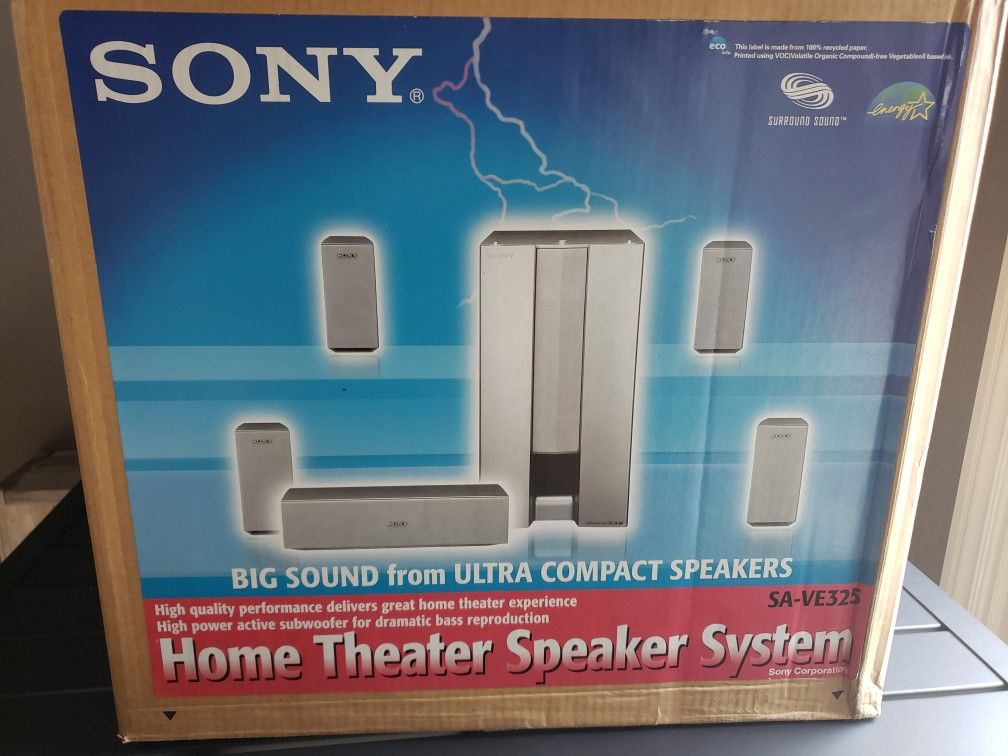 Sony's SA-VE325 system makes home theater easy — and remarkably economical. Just add a multichannel receiver and a HiFi VCR or DVD player to this 6-piece speaker system and start enjoying dynamic, bass-rich surround sound! You get big Sony performance from a 75-watt powered subwoofer, a low-profile center channel speaker, and compact front and rear satellites that "hide" in your room. The subwoofer features a signal-sensing automatic power on/off circuit (just set it and forget it!), and a selectable Movie/Music bass contour switch. Plus, the 'VE325 simplifies shopping, since the speakers are already timbre-matched for seamless sound. It even comes complete with all the cables you need to connect each speaker. Details: Front and rear satellites: video-shielded 2"x4" full-range driver each handles up to 100 watts 8-ohm impedance sensitivity 87 dB 2-13/16"W x 6"H x 5"D Center channel speaker: video-shielded handles up to 120 watts dual 2"x4" drivers 8-ohm impedance sensitivity 89 dB 11-7/8"W x 3-1/8"H x 5-1/16"D Subwoofer: Movie/Music mode switch auto power on/off 75-watt amplifier 6-3/8" driver 8-1/16"W x 15-1/4"H x 15-1/4"D System specs: bass reflex design for satellites, center, and sub frequency response 28-20,000 Hz