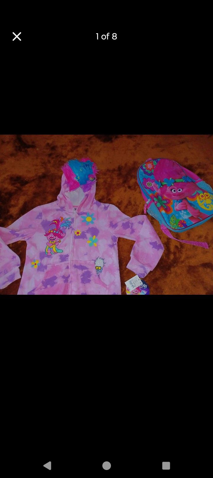 The jacket is new and the backpack has been used. Want $18 for set theme trolls still has tags on it