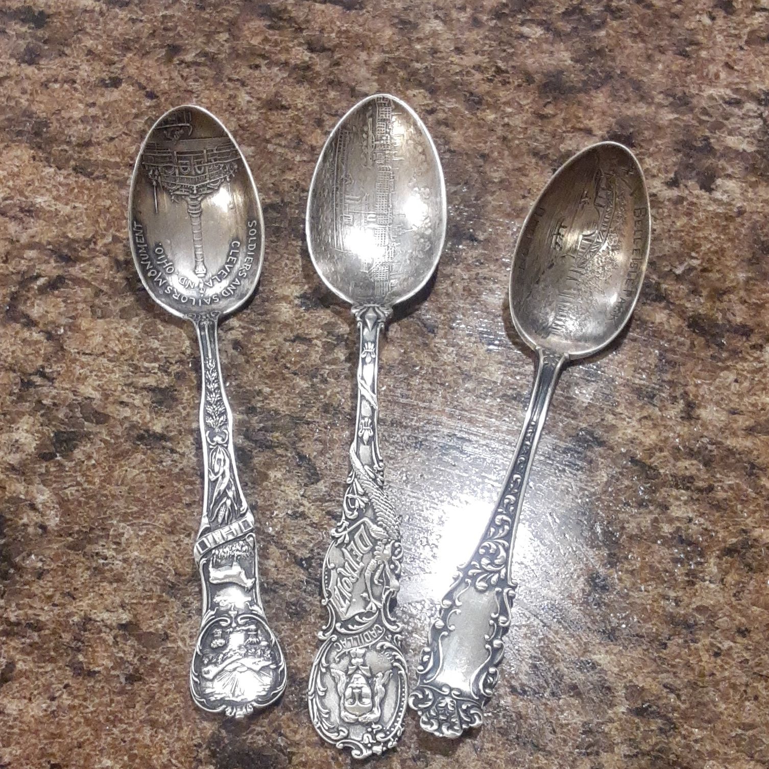 These antiques are over 100 years old, sterling silver and pretty good condition. If I had to guess each spoon is at least 25 grams, I don't have a scale so it's only a guess. All three have the Sterling stamp